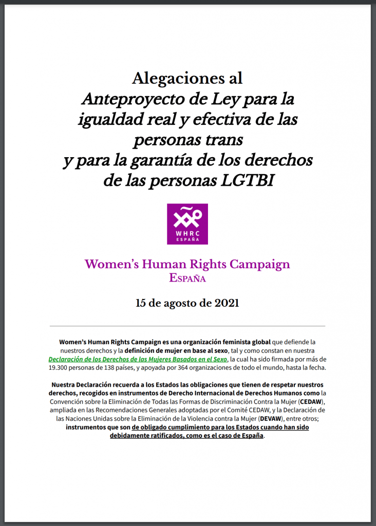 Iniciamos una serie de entradas en nuestra web en las que iremos desgranando el contenido de las alegaciones presentadas por WHRC España al articulado aprobado por el Gobierno en su Anteproyecto de Ley para la igualdad real y efectiva de las personas trans y para la garantía de los derechos de las personas LGTBI (en adelante, APL).